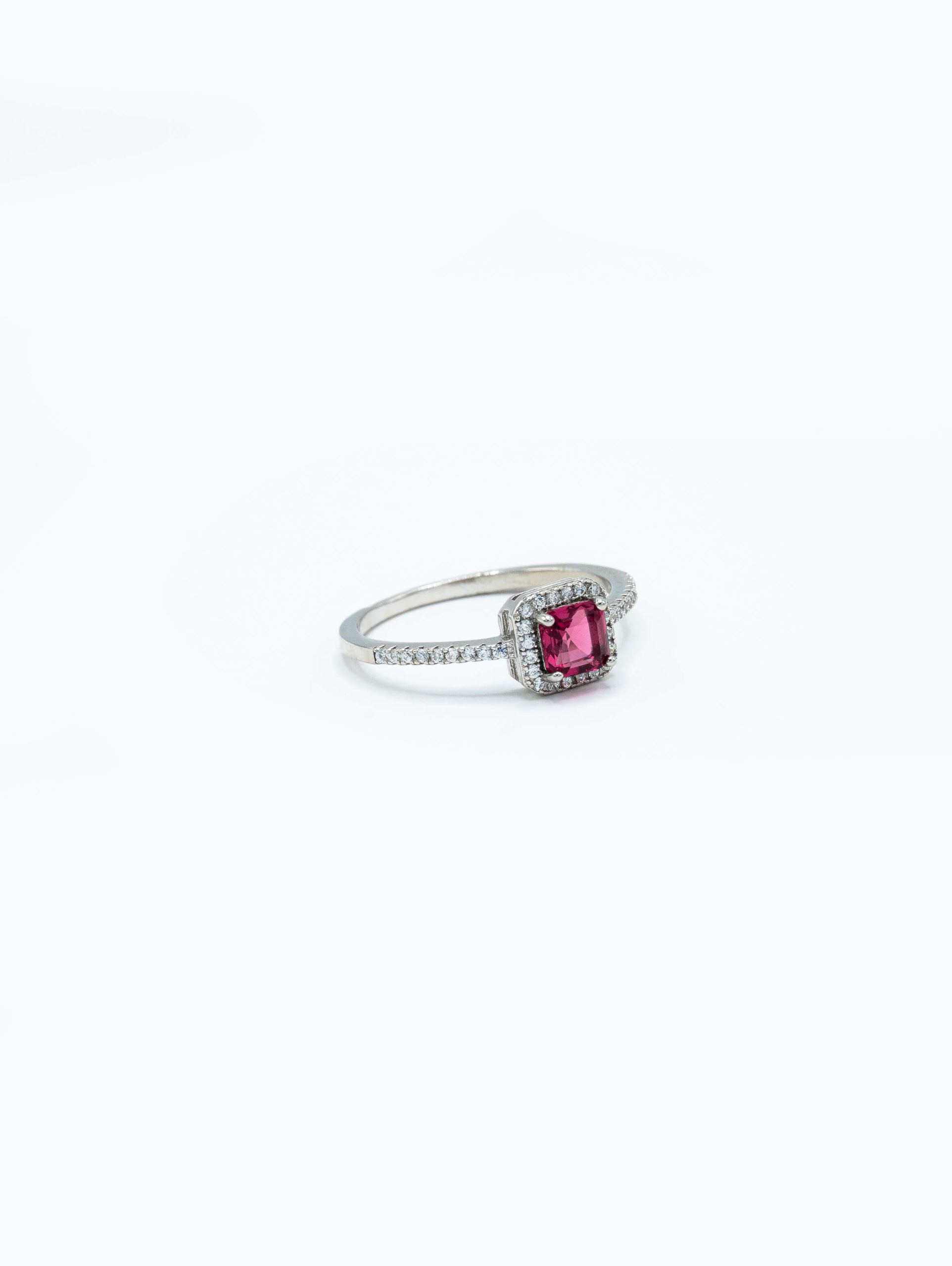رکاب این انگشتر نیز از ظرافت بینصیب نمانده است. بازوهای انگشتر در دو طرف نگین اصلی، با نگینهای ریز کریستالی تزئین شدهاند که نوری پیوسته را به سمت مرکز انگشتر هدایت میکنند. تراش نگین مرکزی، ترکیبی از تراشهای مدرن و کلاسیک است که عمق رنگ سرخابی را به خوبی نشان میدهد. این رنگ خاص که یادآور سنگهای قیمتی کمیاب مانند «یاقوت سرخابی» یا «تورمالین» است، انرژی و گرمای خاصی دارد و میتواند روحی تازه به دستان شما ببخشد. این انگشتر برای بانوانی که از رنگهای معمولی خسته شدهاند و به دنبال اکسسوریای هستند که امضای شخصیشان باشد، انتخابی عالی است.