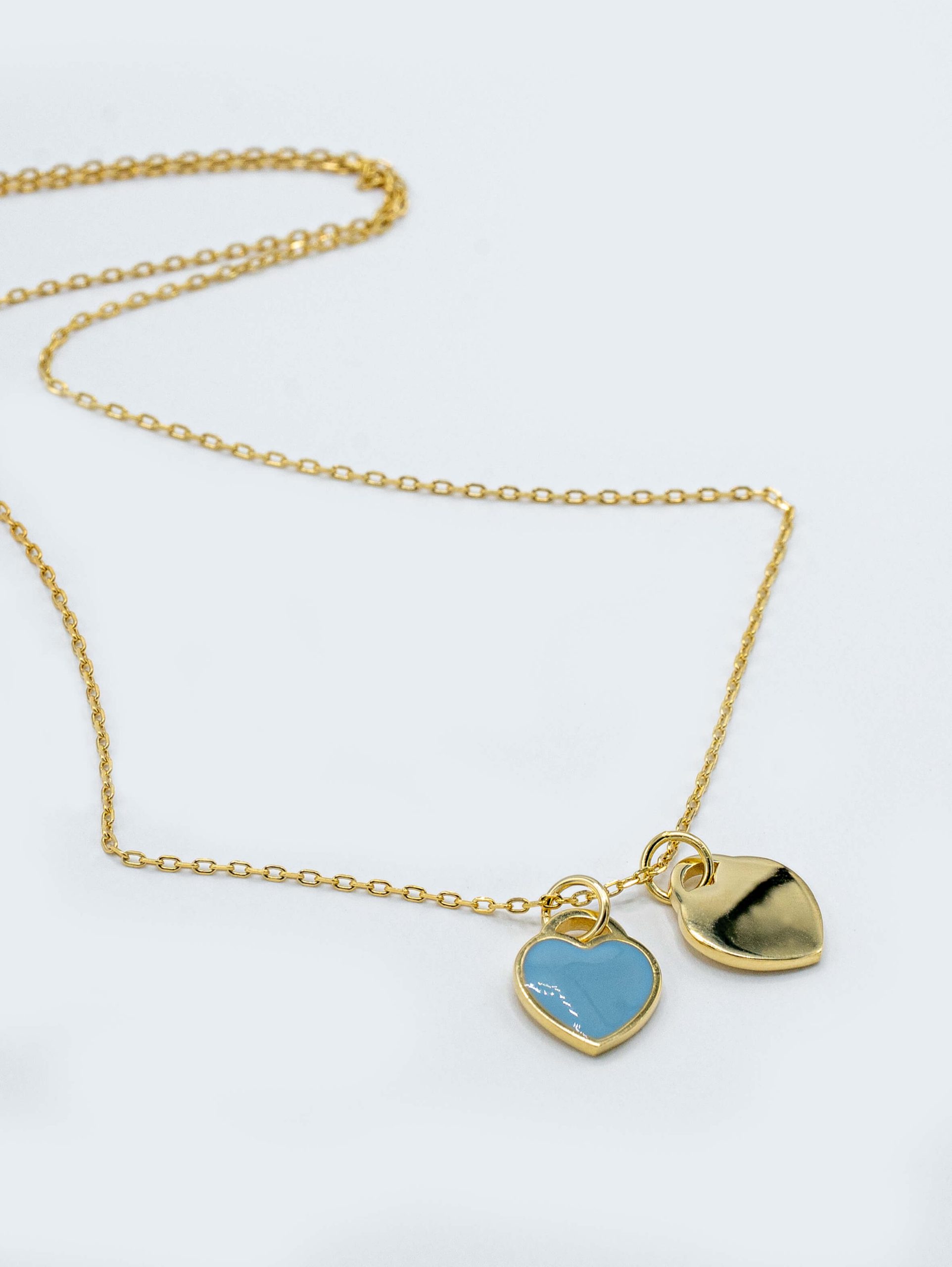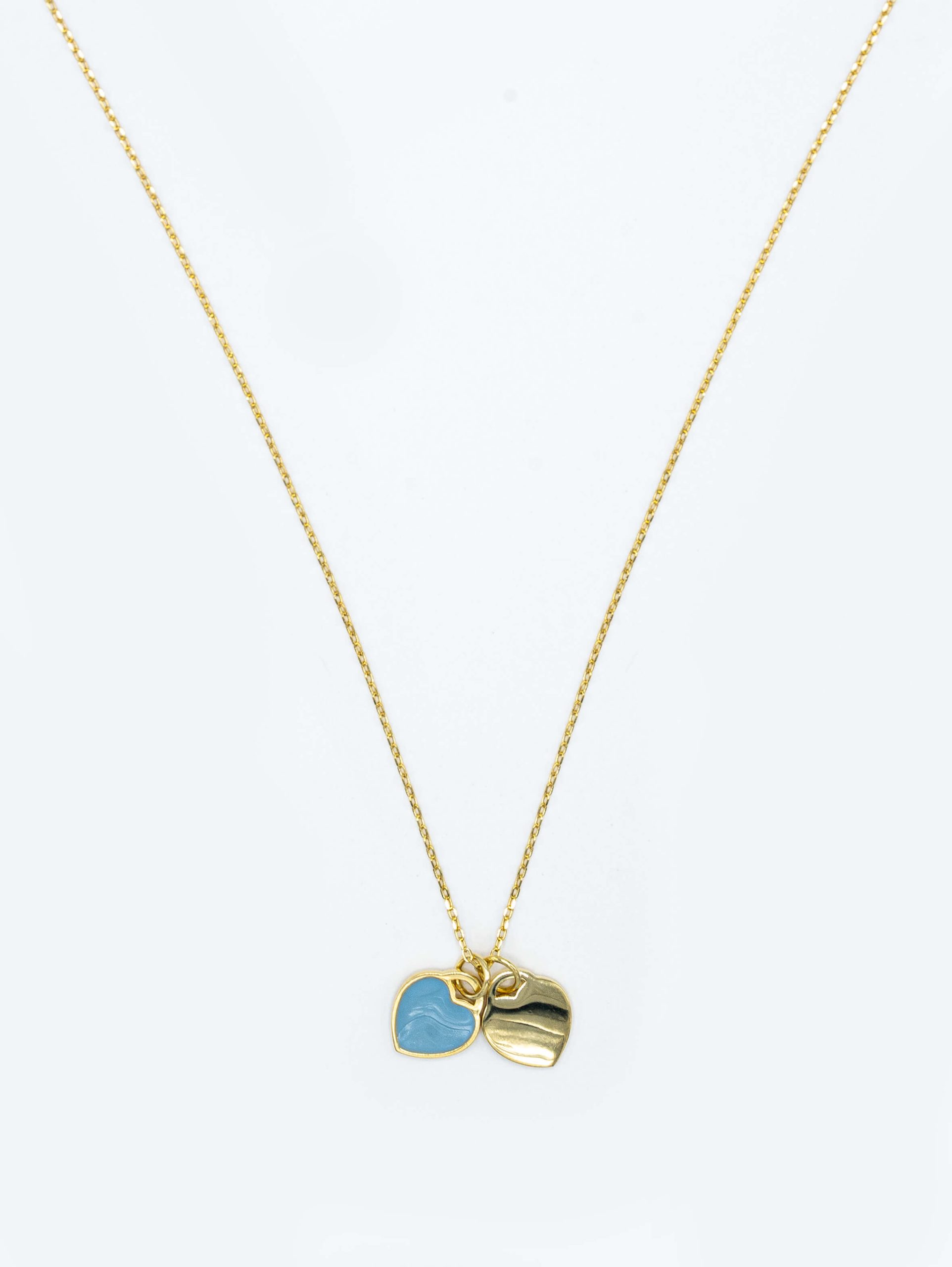 گردنبند نقره دو قلب آبی و طلایی