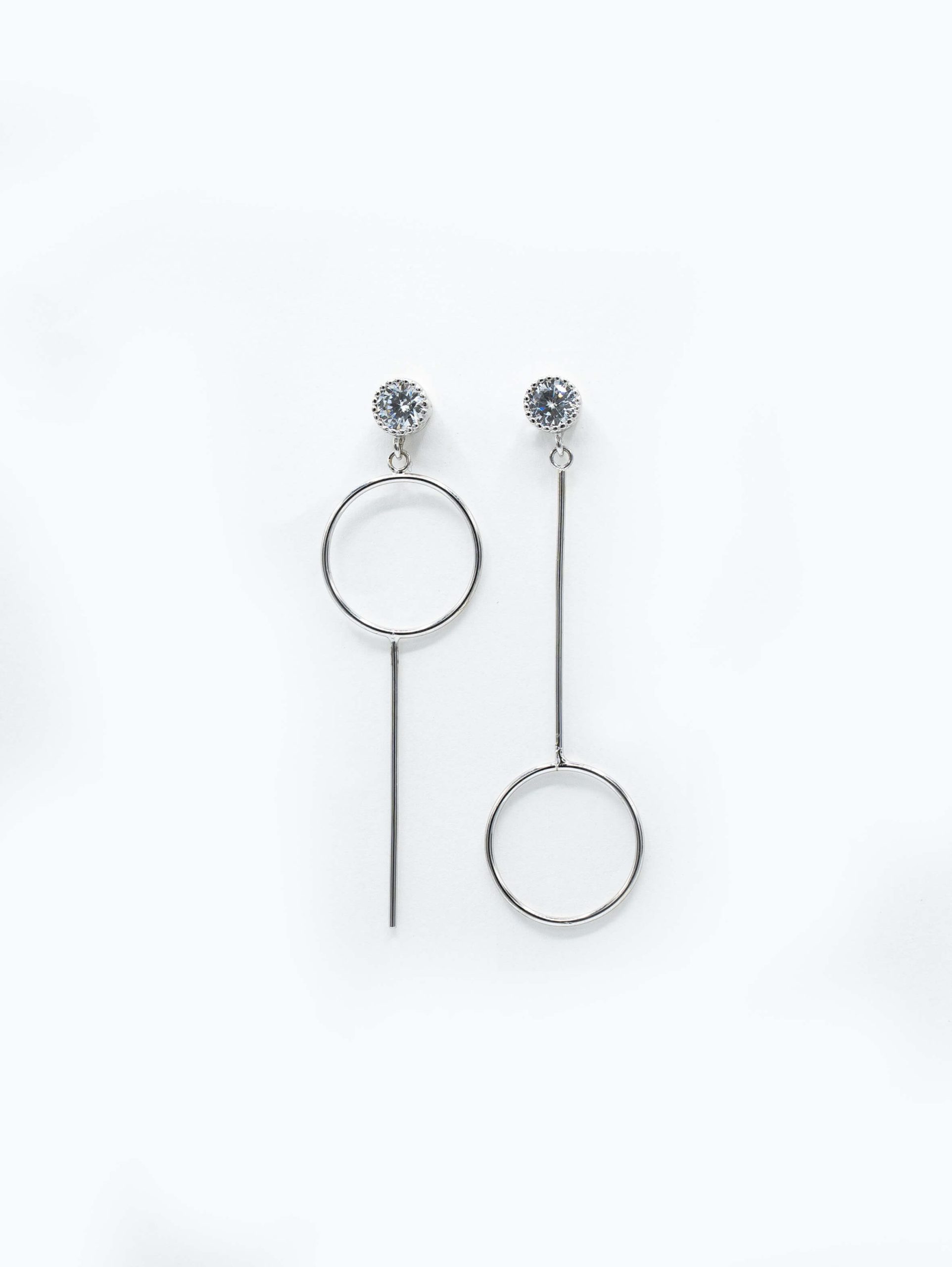 گوشواره نقره نامتقارن دایره و خط
