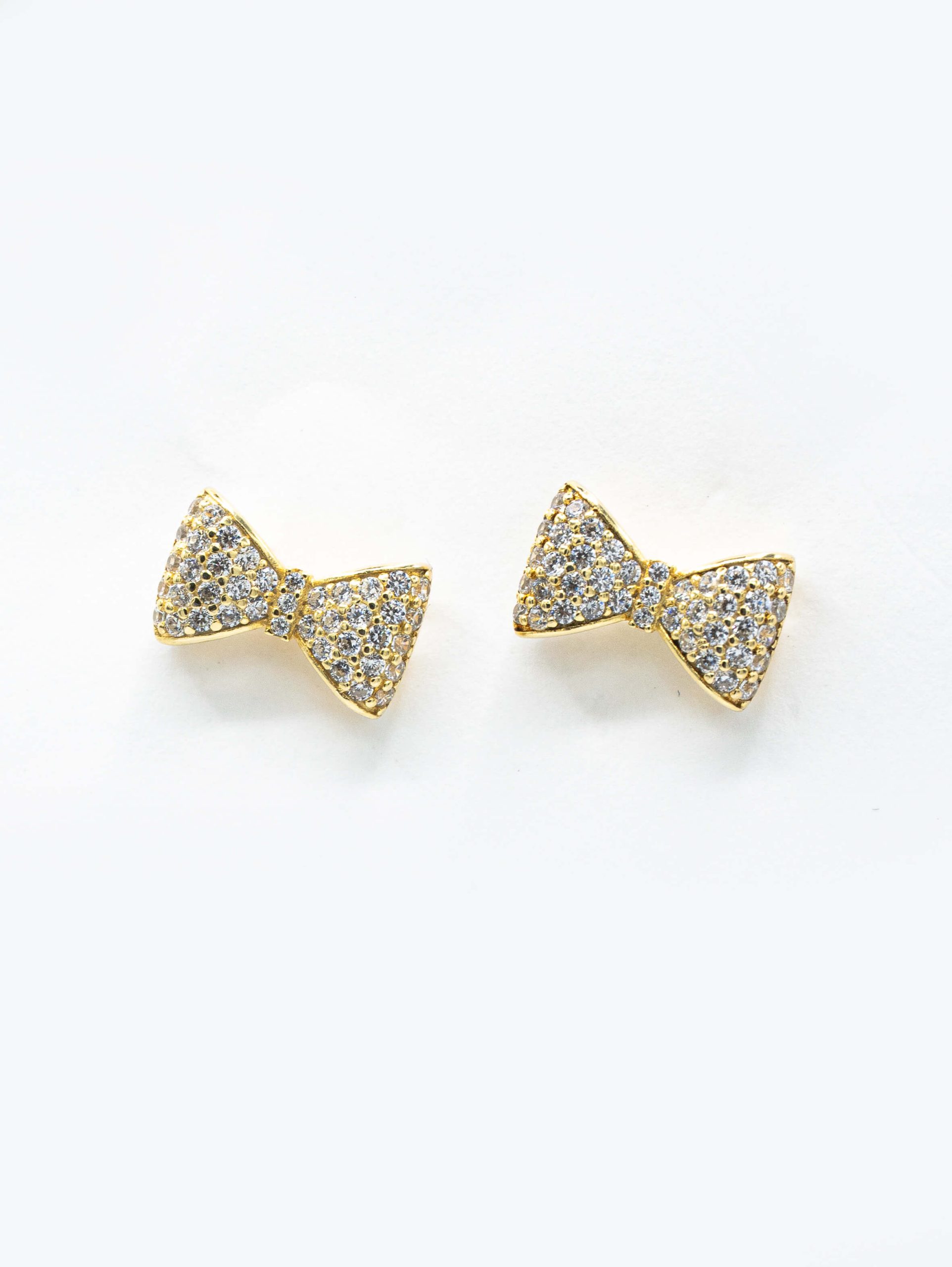 گوشواره نقره پاپیونی آبکاری طلایی (طرح جواهر)